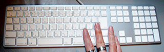 さて、付属のキーボードは事務機器って感じですが(苦笑)、このアルミキーボードはMacっぽい。特にG5やMacProのシルバー筐体とマッチしますね。驚いたのは、想像以上にボディが薄かったこと。そしてキーの低さ。擬音で表現すると、カチャカチャではなくパチパチ。ノートパソコンで打ち慣れてる人には良いかも。